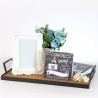 This relatively large wood tray with black handles serves as a beautful...