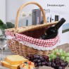 This medium rattan picnic basket with red checkered cloth lining is good...