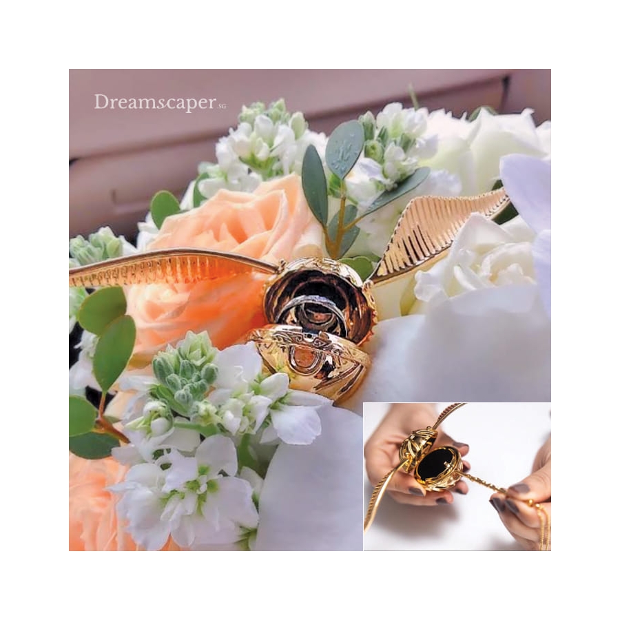 This intricate replica of the magical Golden Snitch, as seen in Harry Potter, is also a ring holder that can be used for proposals or marriage solemnization!