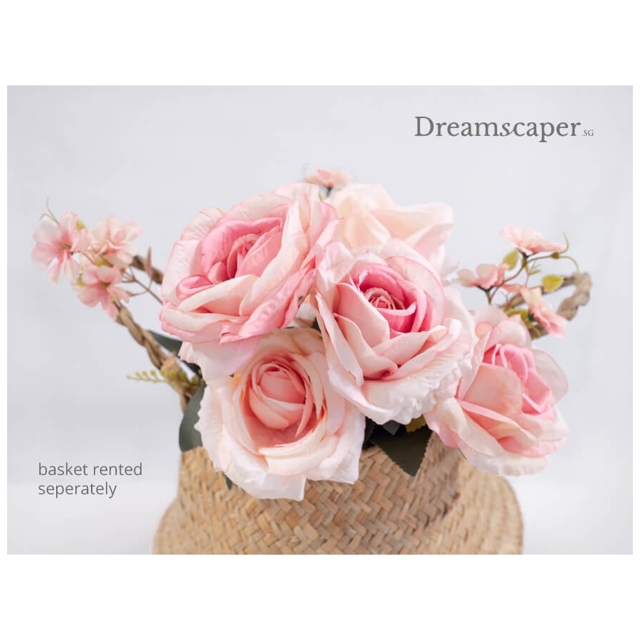 This realistic bouquet of 6 two-tone pink faux roses adds a rustic romantic touch to any flower arrangement. It also looks great as a standalone floral display in a flower basket or a white vase. It is perfect for rustic or garden theme wedding.