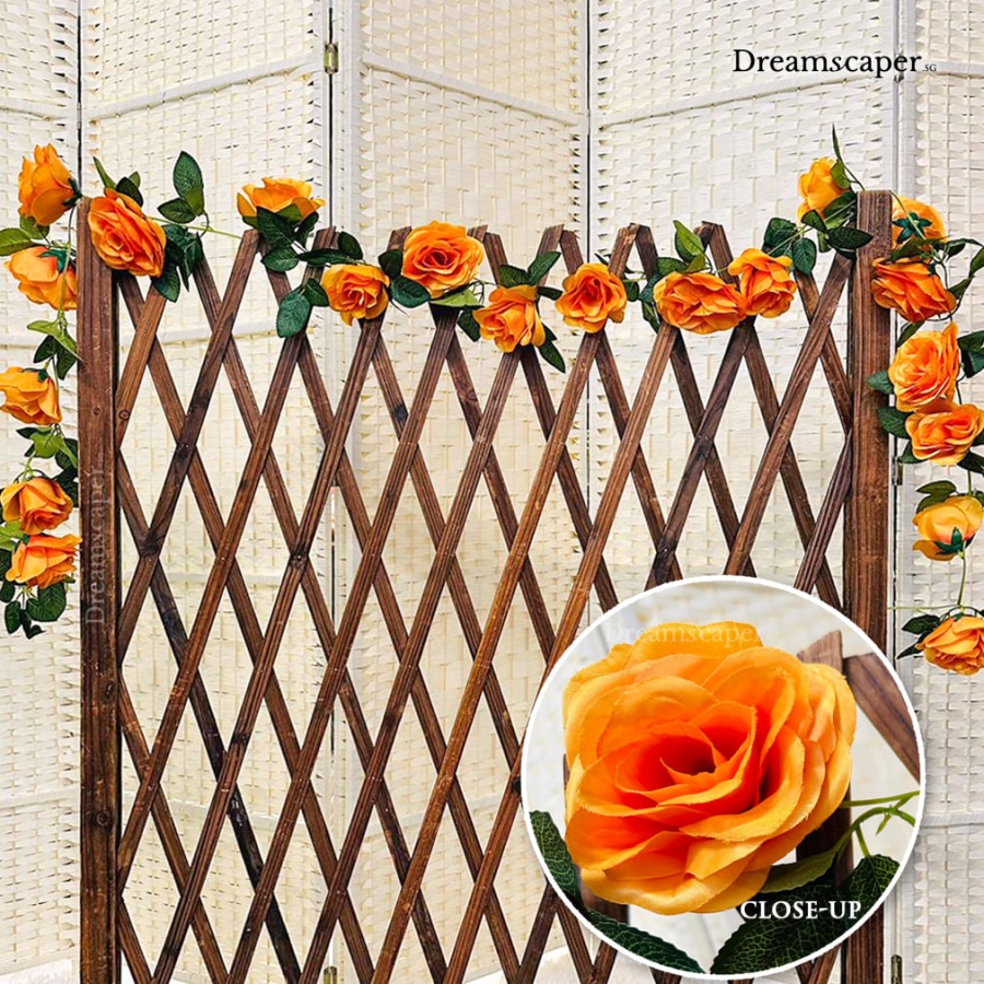Carefully curated to create a natural look, these faux orange rose vines are one of our most versatile and cost-saving decor. Made of realistic silk roses and high-quality vines, these rose vines are perfect for draping over fairy light curtains, arches and fences to achieve a romantic flair.