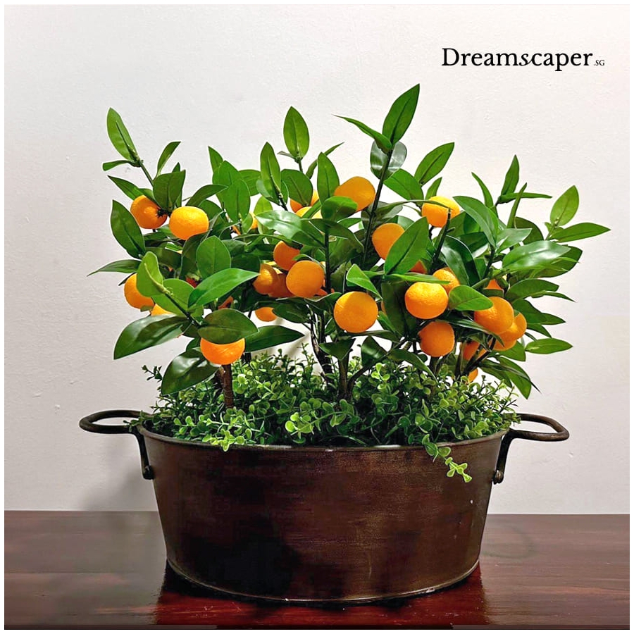 Rent this artificial mandarin orange prosperity kumquat plant in a metal pot for Chinese New Year celebrations and traditional Chinese wedding decorations!