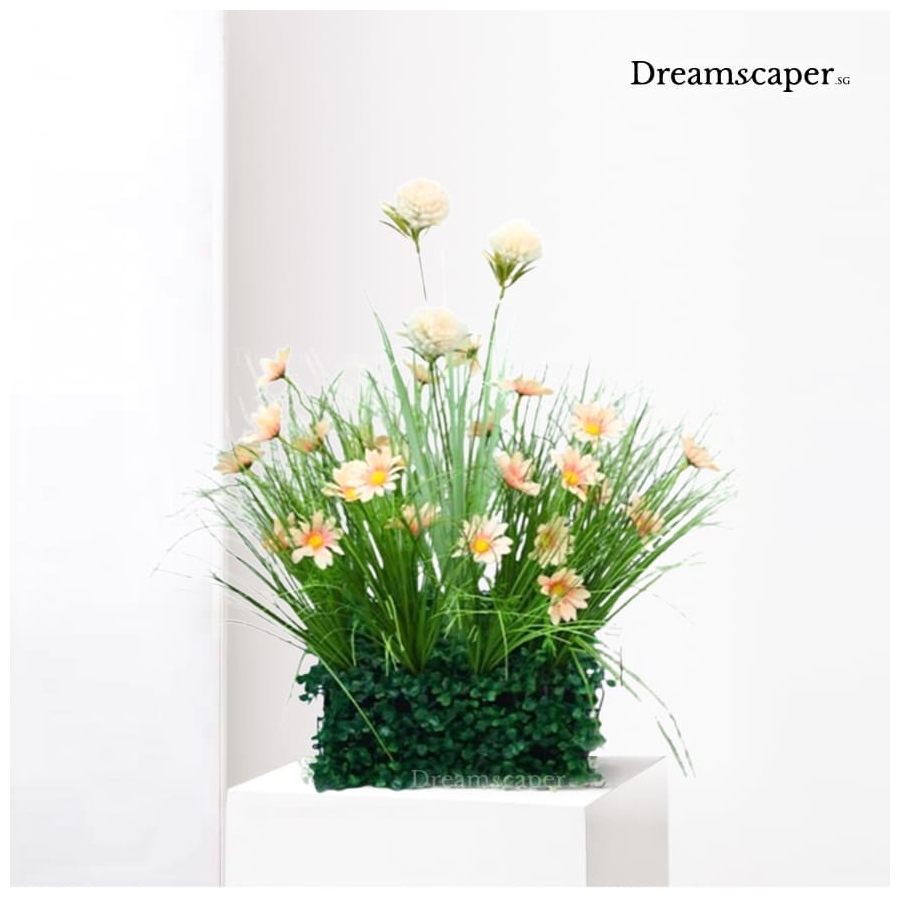 Realistic faux green plants add life and vibrance to any occasion and this artificial green planter arrangement is great for large events, product showcase and corporate meetings. Add on some artificial orchid stalks or long stem peony flowers for a lively and impressive showcase! Realistic faux green plants add life...