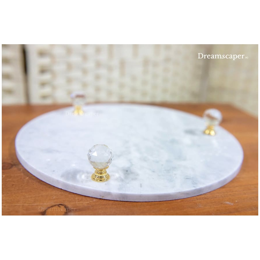 This elegant round marble plate is a beautiful placeholder that is great for displaying small floral decor, pastries, desserts or even a wedding ring box.
