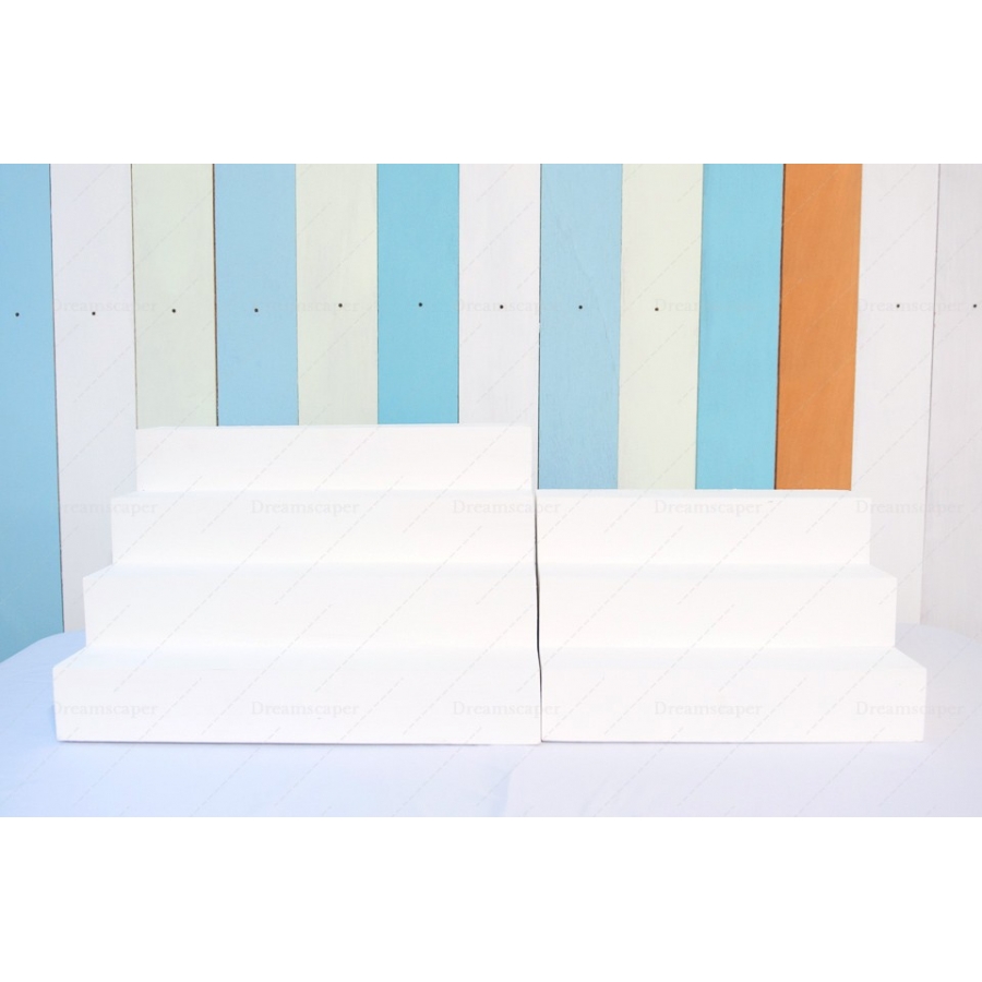White wooden display rack of two sizes that can be placed together. Great for displaying trinkets and knick knacks for your popup stall or push cart.