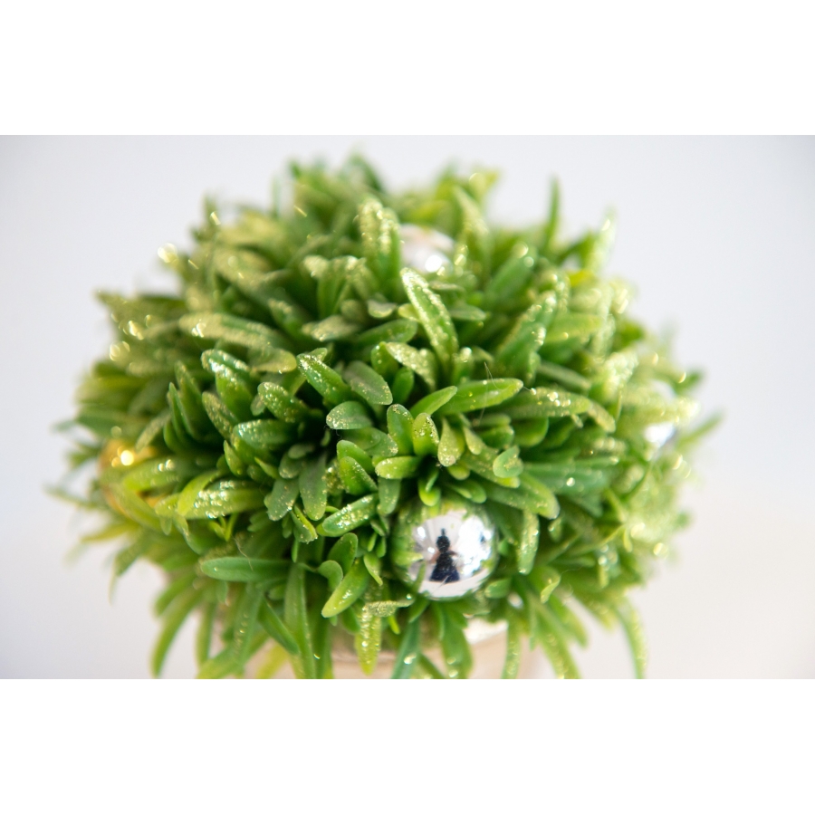 Artificial topiary plants are attractive and fuss-free decor that easily enliven your event space. This bright round topiary plant comes in a gold glazed pot with gold and silver accents, making it perfect for Christmas festive events and Great Gatsby themed parties.