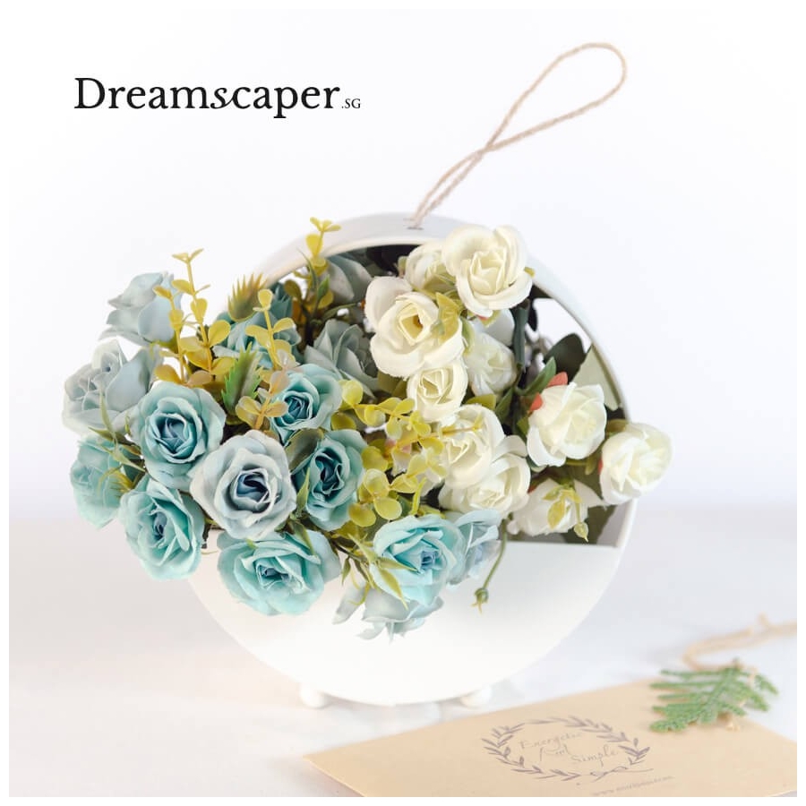 Our white round metal planter container is a unique and quaint way to decorate your floral arrangements for weddings or country garden theme events!