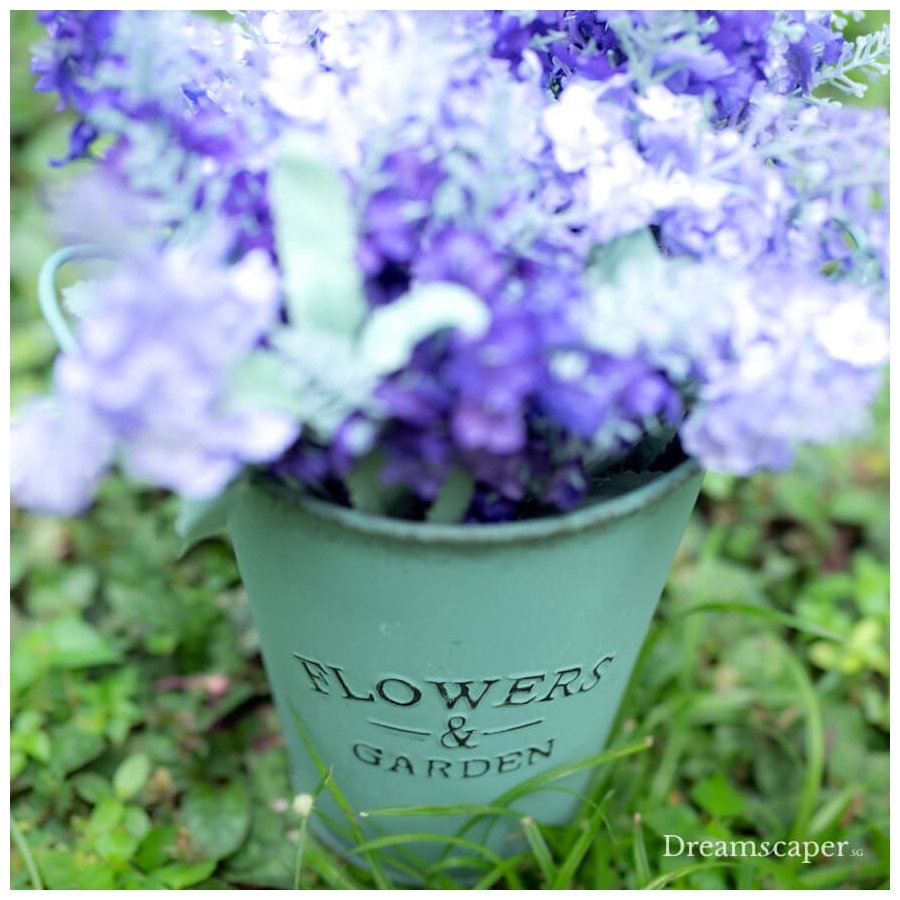This cute vintage green flower metal bucket is great for displaying bunches of small flowers such as baby's breath, lavender, clary sage etc..