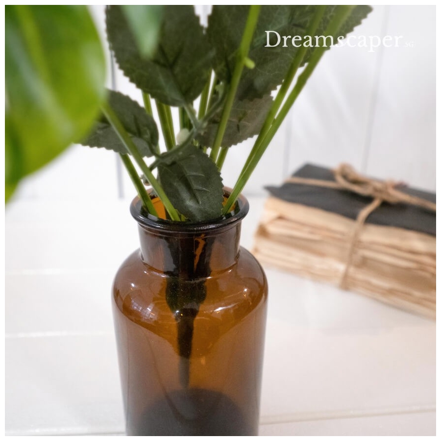 Large amber brown glass bottle just oozes that vintage rustic look... Great for displaying flower arrangments/botanicals for wedding table decor.