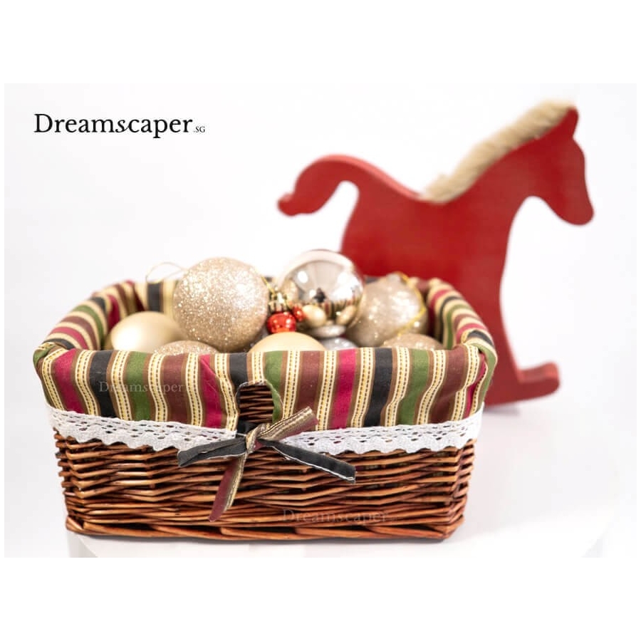 This lined wicker basket is a versatile prop that you can use to put Christmas ornaments, candies or even table floral arrangements for your Xmas event. Decorate it with fairy lights and Xmas ornament balls for a fun festive display!