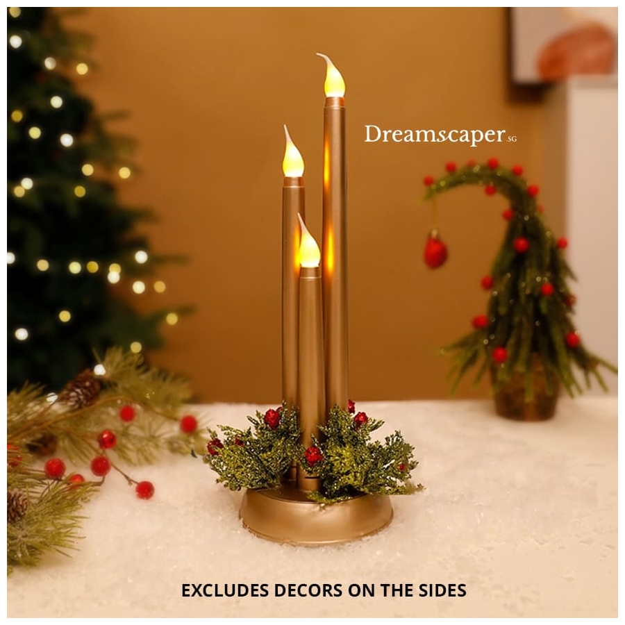 Illuminate your celebrations with this elegant festive gold candles cluster. The set of three joined metallic gold LED tapers, creating an instant centerpiece. Perfect for Christmas table centerpiece and festive celebrations.