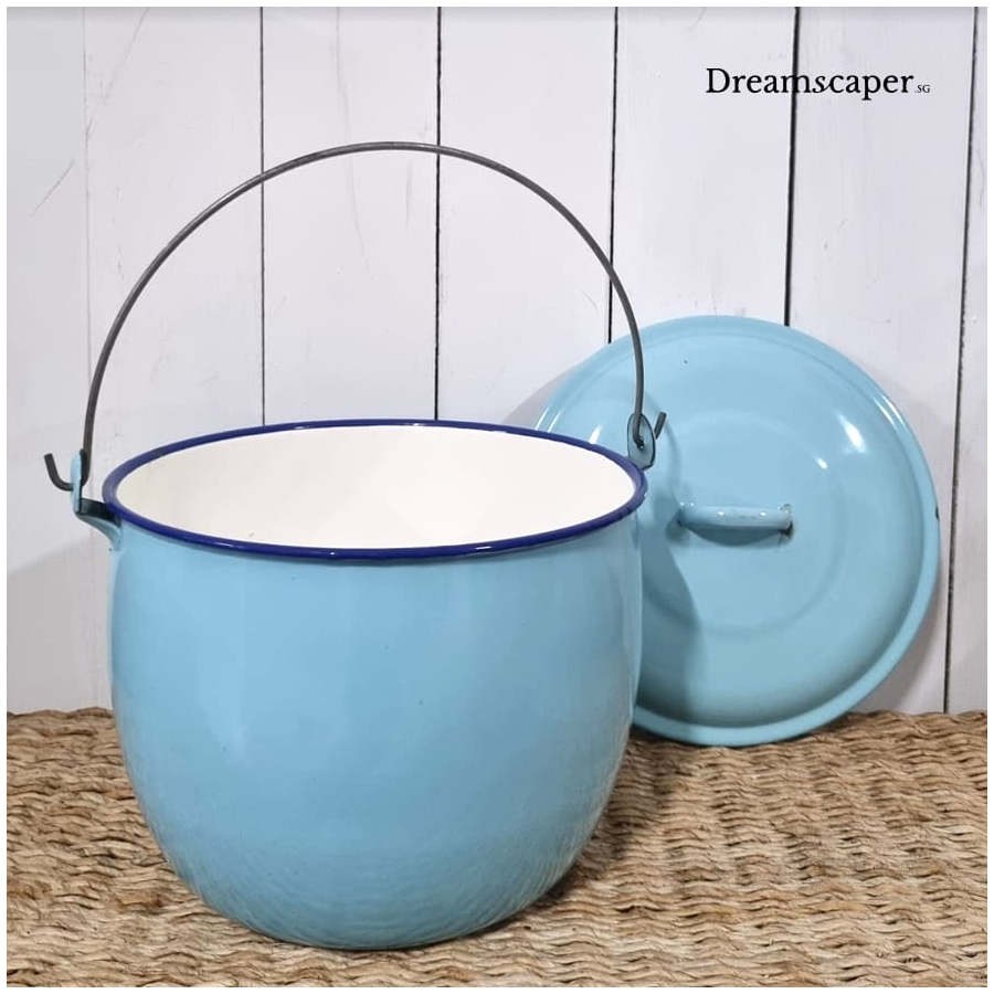 This big vintage enamel cooking pot with handle brings back the olden days charm and is the perfect prop for Singapore kampong video productions and retro events