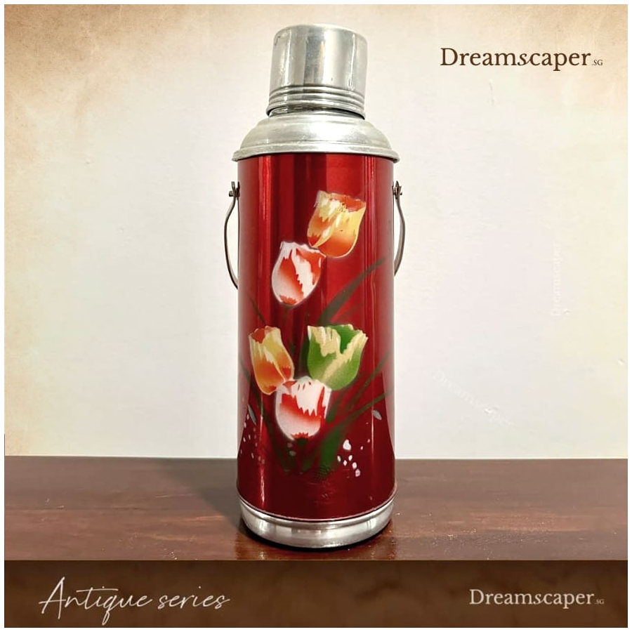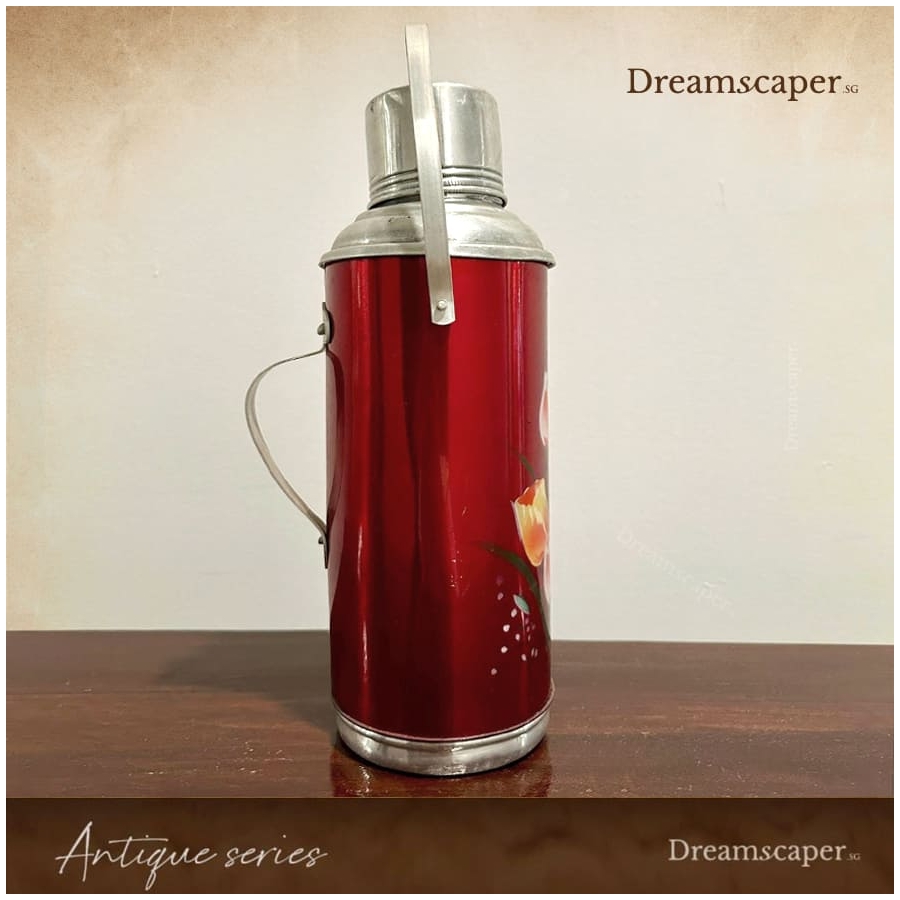 A vintage old school styled floral metal hot water flask is the perfect prop for Old School Singapore Kampong or Peranakan theme event decor!