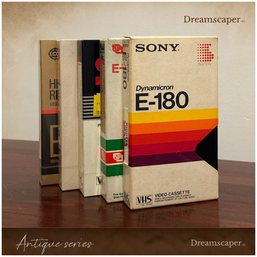 A nostalgic throwback to the golden era of home entertainment in Singapore, these vintage VHS video tapes are iconic relics of the past. Perfect for retro events or an Old School Singapore heritage showcase, evoke memories of video rentals and classic movies.