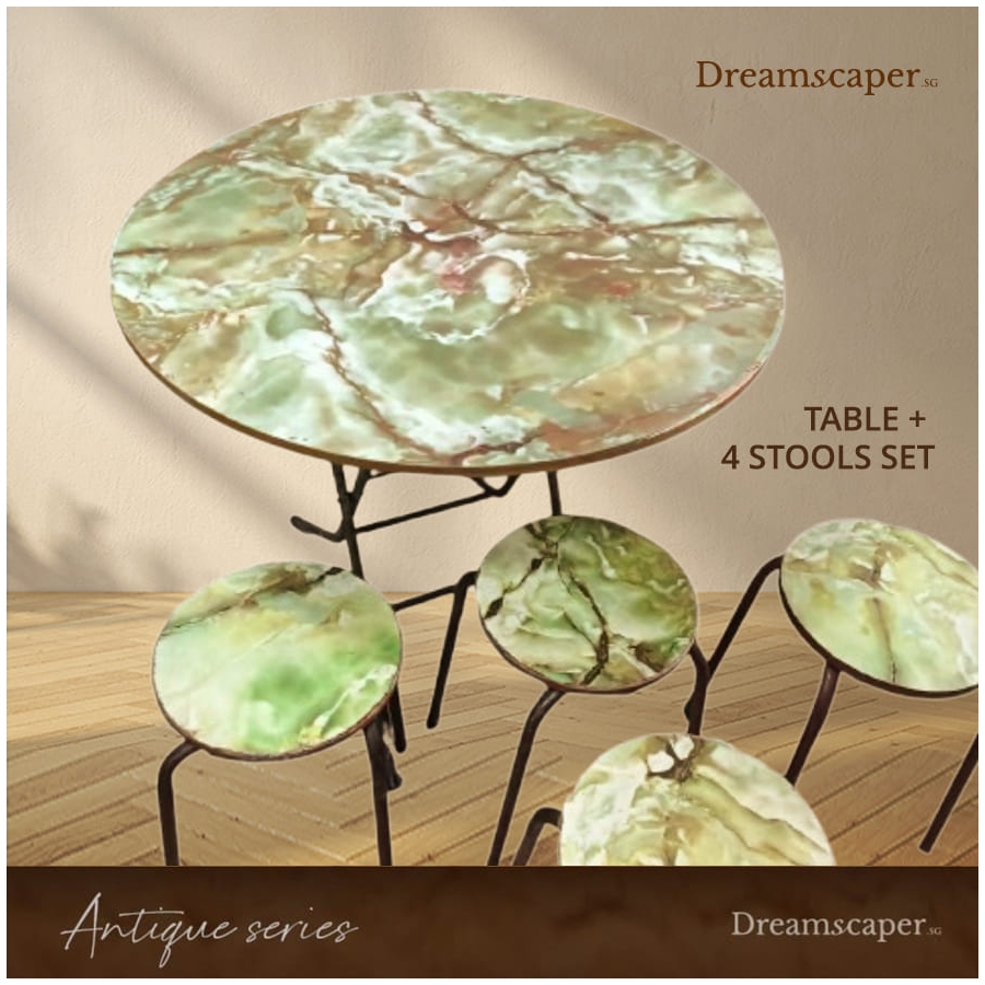 NOTE: A set of 1 table and 4 stools. We have at least 5 sets in inventory.