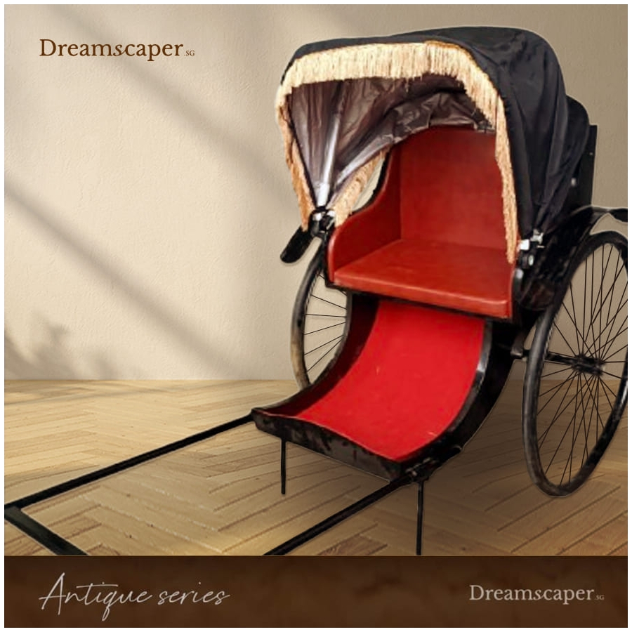 Take a ride down memory lane with our vintage Singapore rickshaw trishaw rental – an iconic symbol of olden-day street life in Singapore. Perfect for heritage-themed setups, photo booths, or nostalgic displays, this beautifully restored piece adds instant charm and cultural flair to any event space. Rent now to bring the spirit of old Singapore alive!