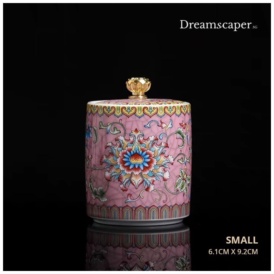 Infuse your space with heritage charm and a splash of elegance. This exquisite Peranakan-style porcelain jar features a rich pink base adorned with intricate floral patterns inspired by traditional Nyonya art. Perfect as a standalone accent or as part of a heritage decor, this medium-sized jar brings color and cultural charm to oriental-themed styling and wedding tea ceremonies.