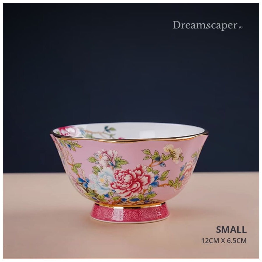 Elevate your peranakan event with our exquisite Peranakan pink bowl that features intricate peony blooms and golden accents, embodying the elegance of Peranakan artistry.