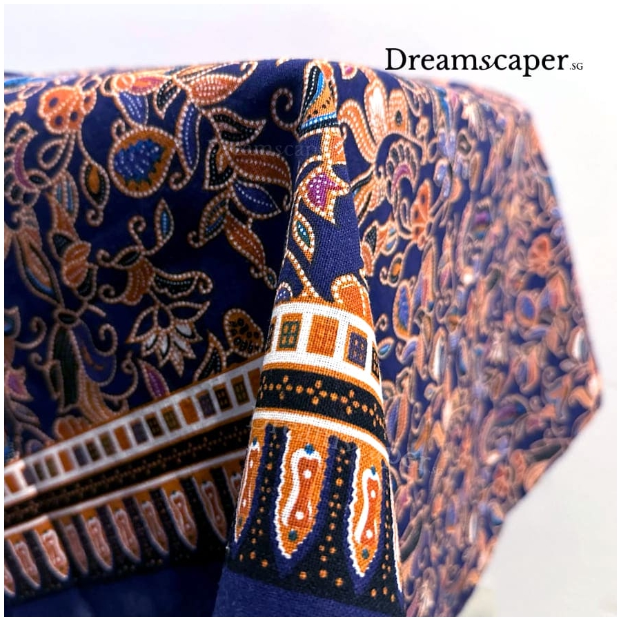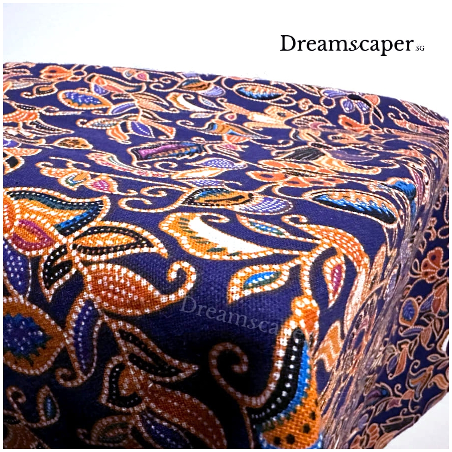 This blue batik cloth features intricate floral and geometric motifs inspired by traditional Javanese and Peranakan designs. Perfect for adding a refined cultural touch to table runner, or as authentic decor for Oriental – Peranakan themed events!