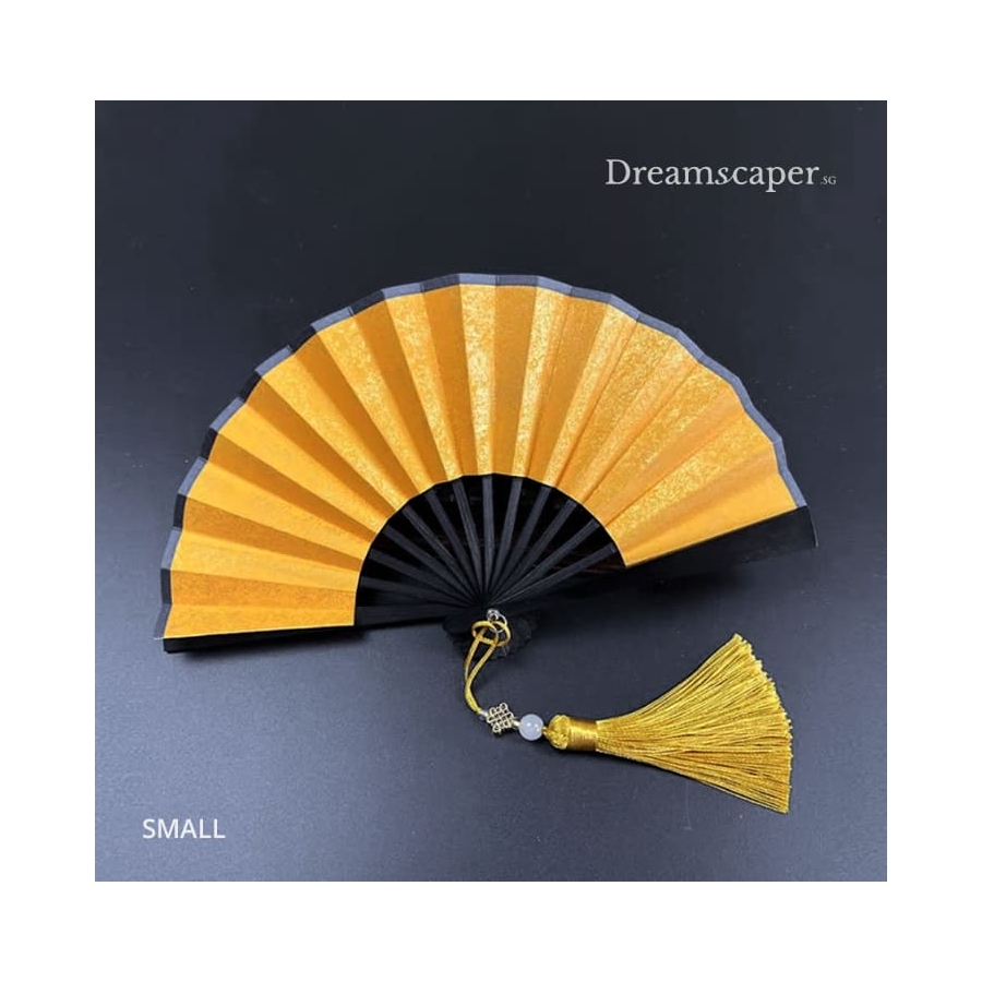 A sleek and elegant oriental paper fan that is an eye-catching addition to any Oriental, Chinese, or Peranakan Nyonya-themed event decor.
