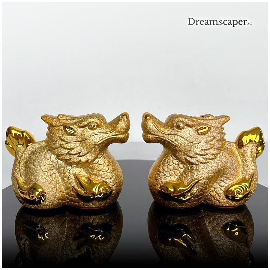 A symbol of prosperity and grandeur, this exquisite pair of golden dragons are great for traditional Chinese weddings and Chinese New Year festive decorations.
