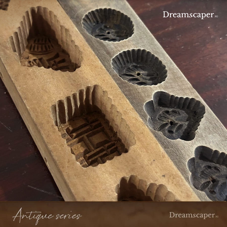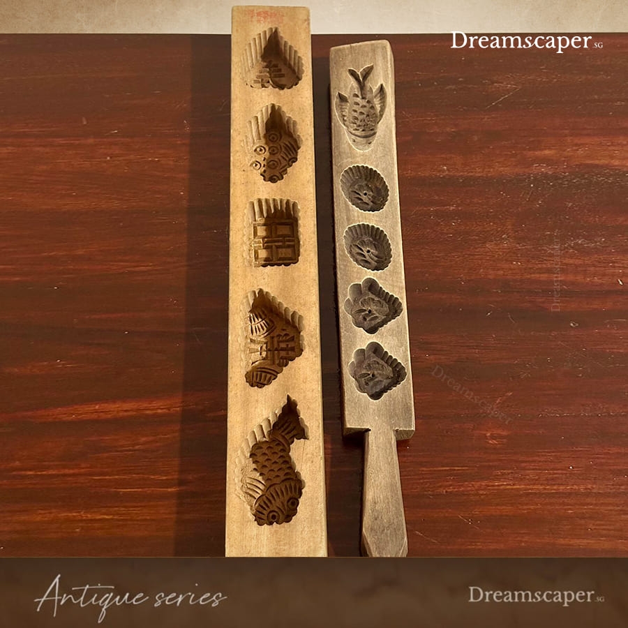 Traditional wooden nyonya kueh mould is the quintessential prop for Peranakan theme weddings, old school Singapore events and Southeast Asian heritage decor event.