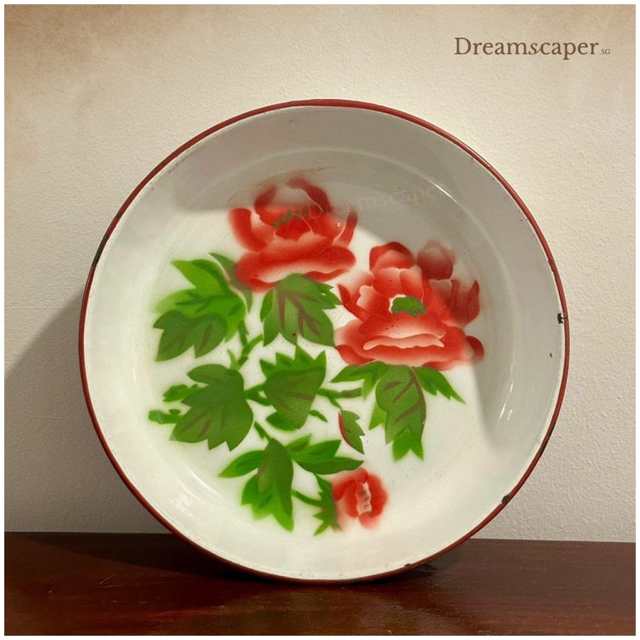 This classic enamel tray features a vibrant red peony motif symbolizing prosperity and happiness. Ideal decors for heritage events, or cultural events like weddings and tea ceremonies, it adds nostalgic charm to any setting.