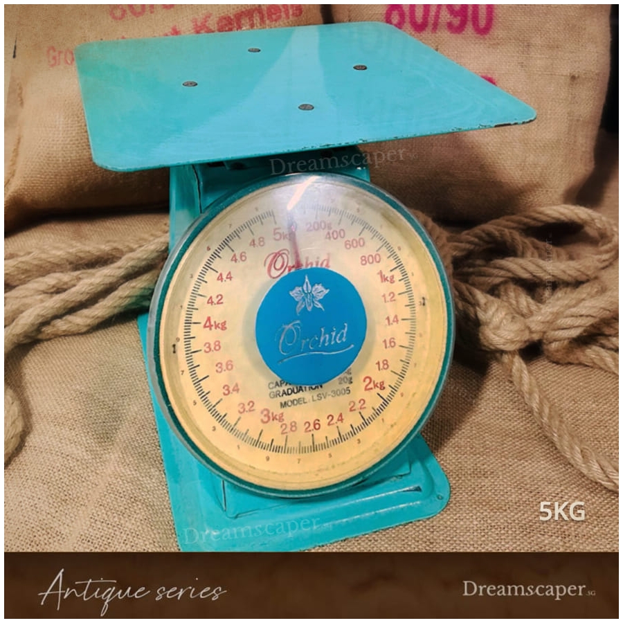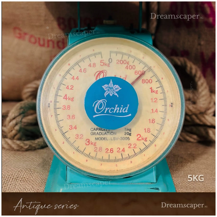 Relive the nostalgia of younger times at the wet markets with our old school Singapore Vintage Weighing Scale. Orchid brand, analog. This iconic green weighing scale is the ideal prop for Old School Singapore coffeeshop decorations, kopitiam setups and Singapore hawker theme events.