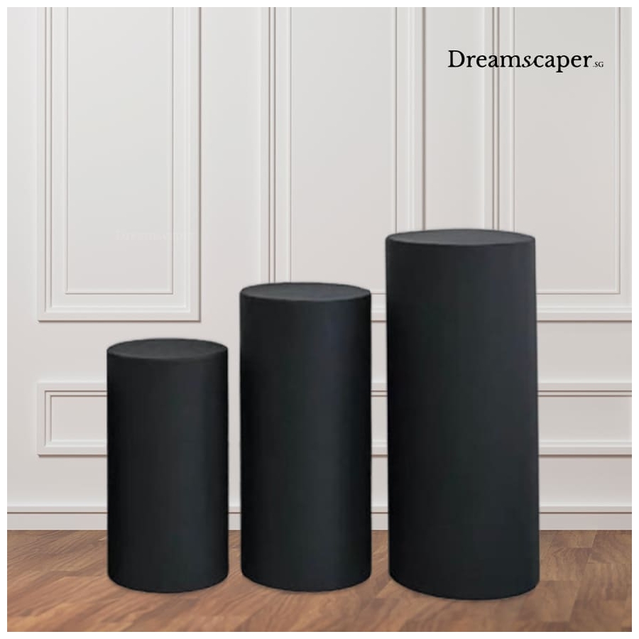 Elevate your event setup with this sleek black cylinder plinth set, perfect for displaying cakes, floral arrangements, products, or decorative pieces. With a modern and minimalist design, these pedestals add a touch of sophistication to weddings, corporate events, and themed parties. Available in different heights for a dynamic presentation.