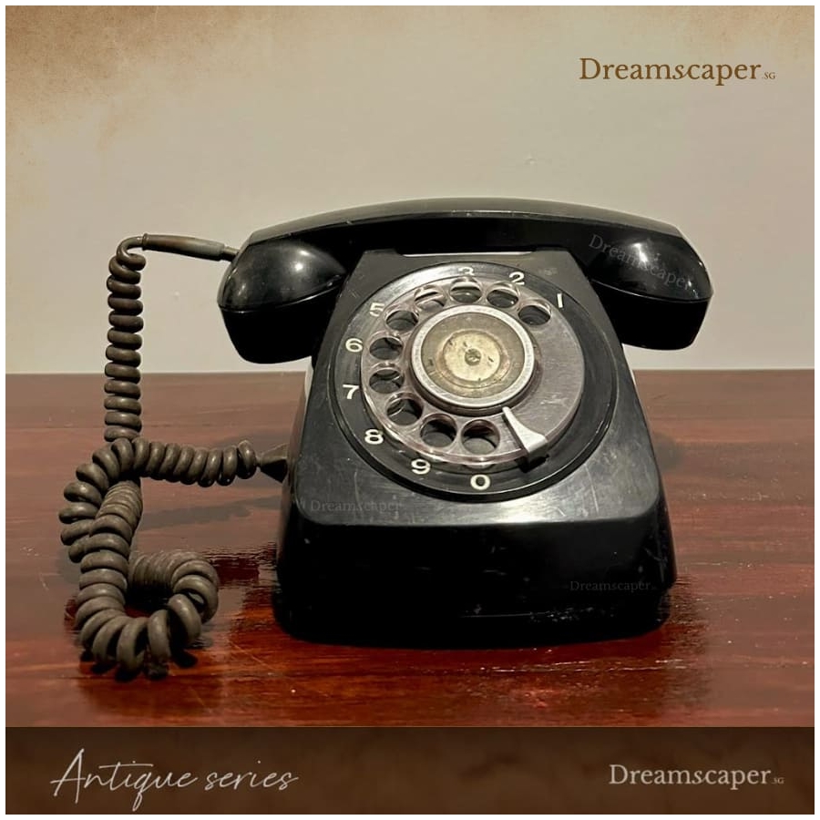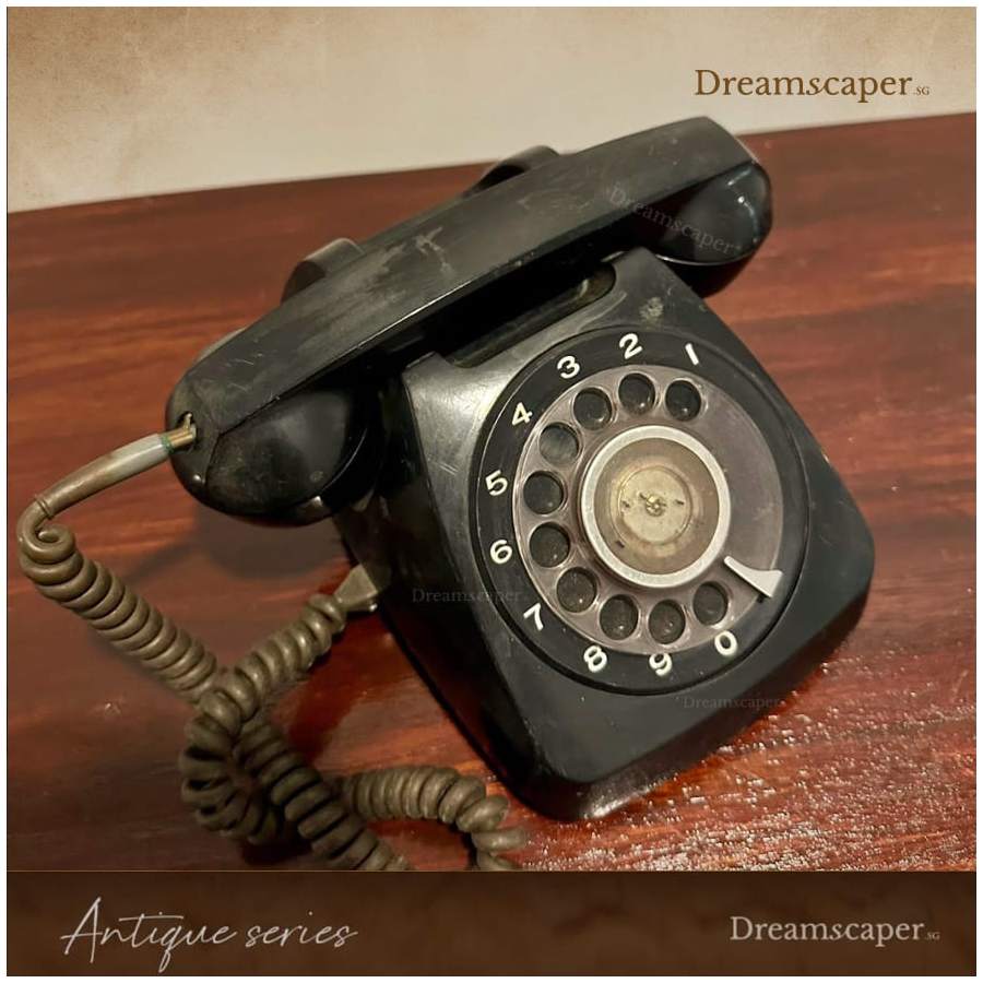 Embrace the 1920s-1950s with this antique black rotary dial desk phone. The cradle phone has a simple vintage charm that is perfect for old school events and heritage theme decor setups.