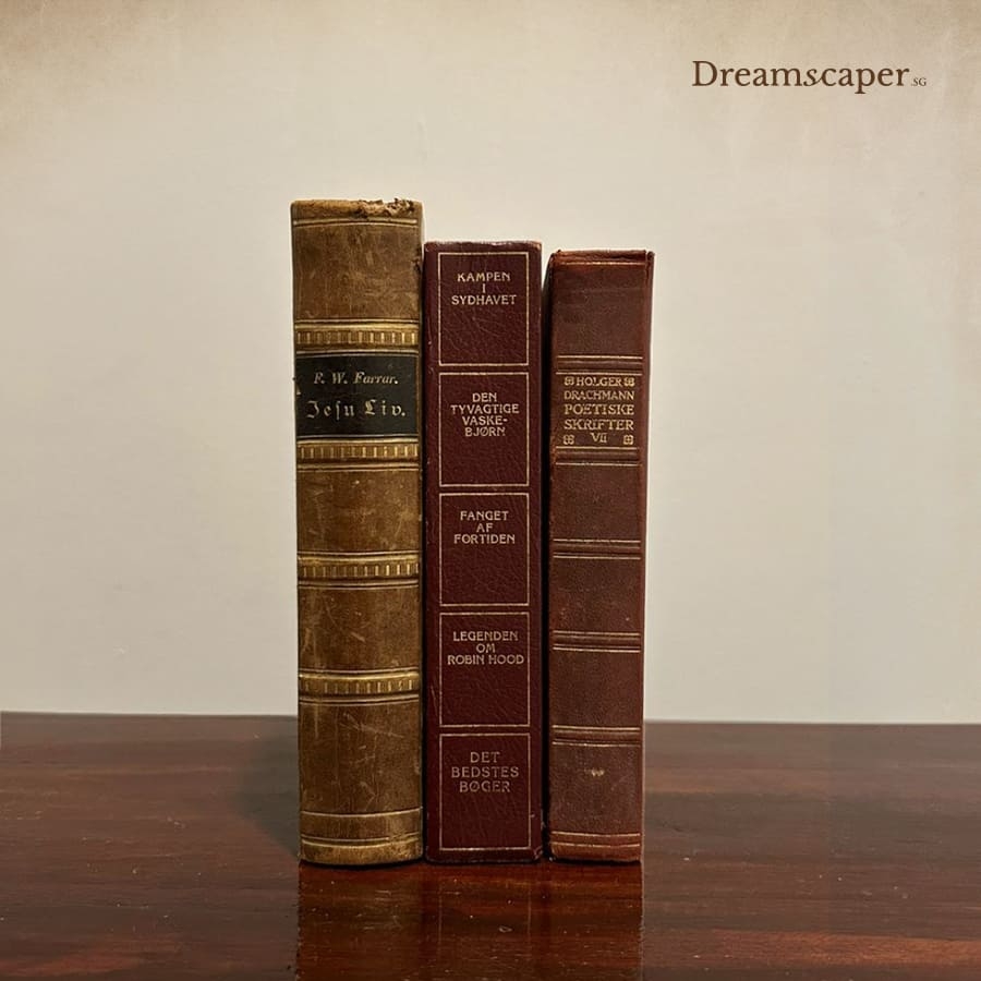 This set of 3 old antique books decoration is great for vintage photo shoots and as decor riser for vintage style wedding reception.