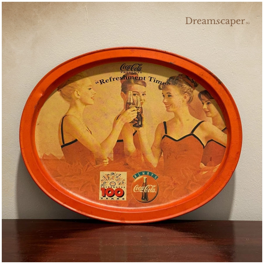 This nostalgic F&N metal tray features a charming vintage advertisement, evoking the golden era of classic soft drinks. With its retro slogan, perfect for enhancing the ambiance of places with a heritage, Peranakan, or old-school kopitiam vibe! TAKE NOTE: Security deposit for this item is 3x of rental fee, as it is an antique item. This nostalgic F&N metal tray...