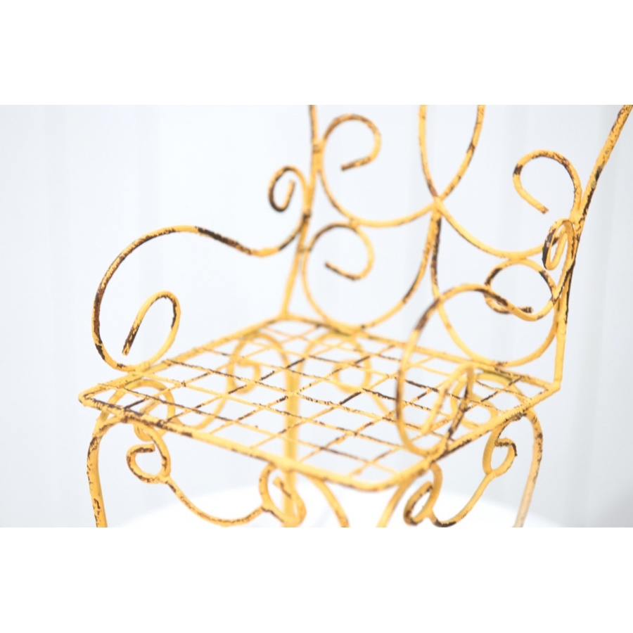 Subtly vibrant with a unique distressed look, this mini wrought iron chair is an ideal table decor for garden events with a vintage flair.