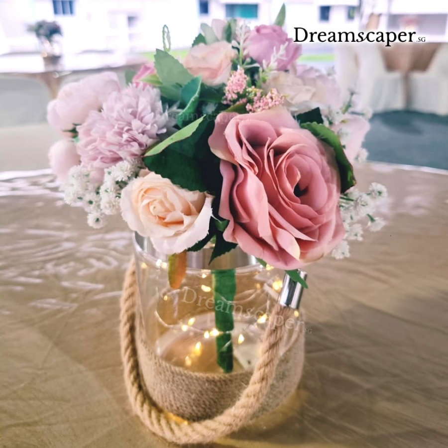 This charming Glass Jar with Rope Handle adds a beautiful nautical, rustic, and vintage touch to any table. Perfect as an earthy centerpiece for displaying flowers with LED lights.