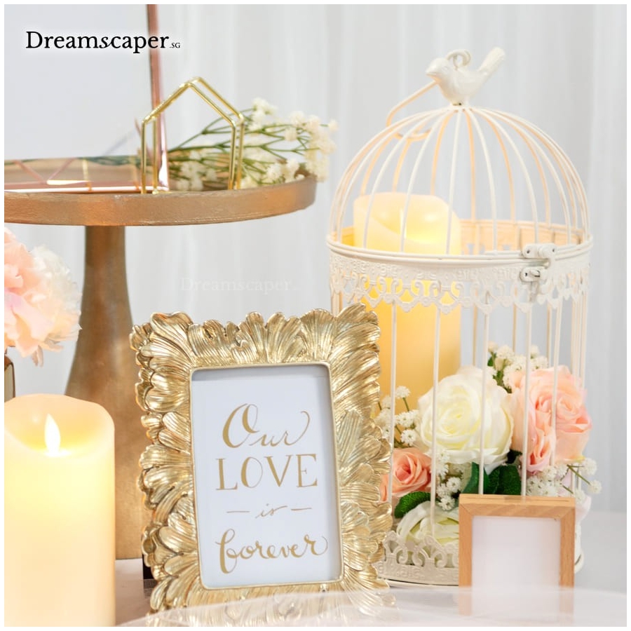 Whimsical and elegant, this ivory white bird cage is ideal for wedding reception tables and enchanted garden themed weddings. Add in some red roses and a LED candle for a romantic flower arrangement perfect for marriage proposals!