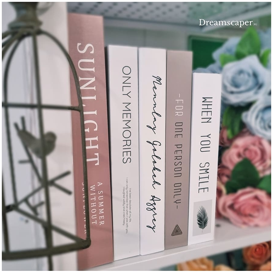 Add a modern minimalist vibe to your home staging decor or wedding reception display with this set of 5 lightweight and aesthetically pleasing book props. You can use them as risers too for your marriage proposal decor.